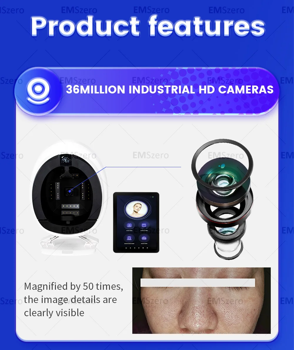8-Spectrum Imaging Technology: This advanced imaging technology enables detailed and accurate detection of various skin conditions, such as pigmentation, wrinkles, acne, and moisture levels.