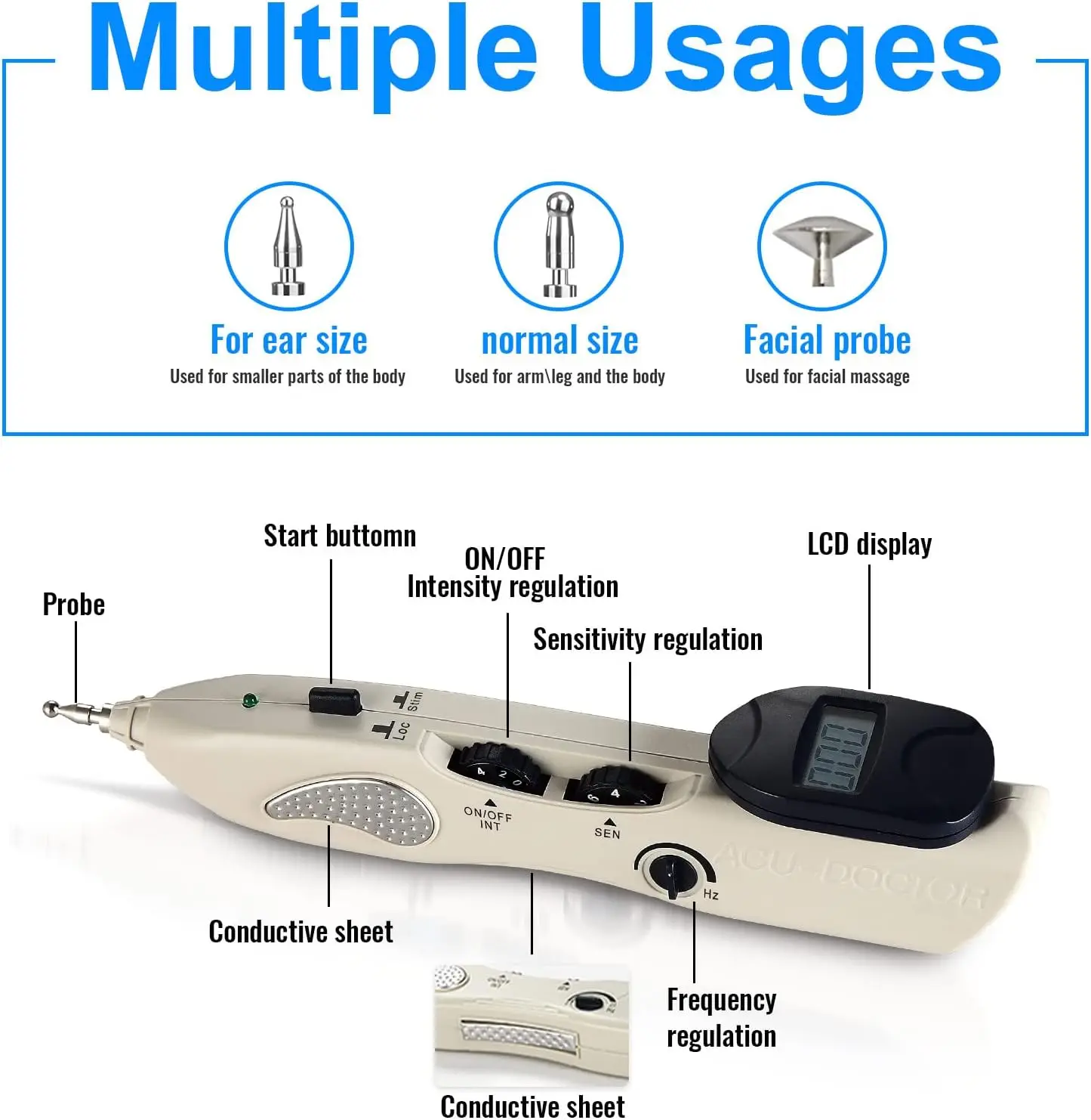 Electronic Acupuncture Pen Meridian Pen Find Acupoints Automatically with 3 Massage Heads Rechargeable
