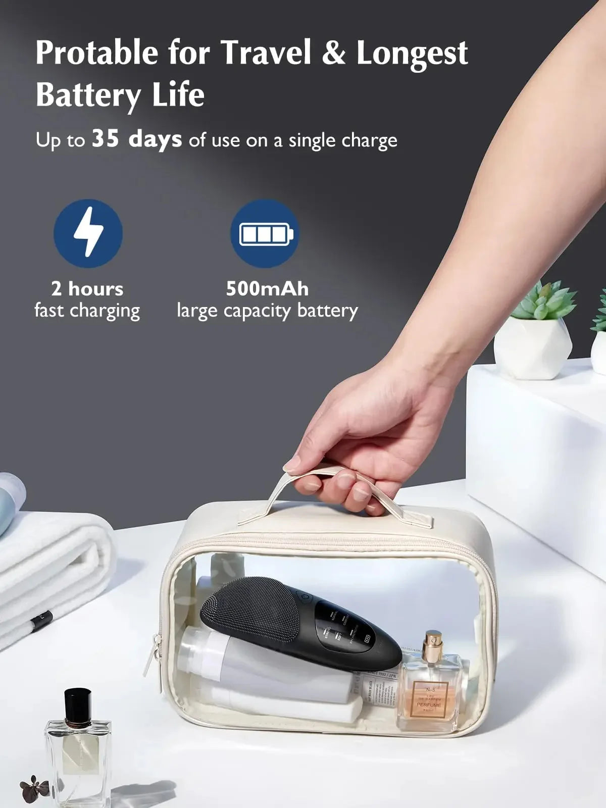35 DAYS SUPER BATTERY LIFE: electric face scrubber has a built-in 500mAh large-capacity environmentally friendly battery, which only takes 2 hours to fully charge and can be used continuously for more than 35 days. The face brush cleanser comes with a storage box and storage bag, making it easy to store at home or traveling, so you can enjoy spa-grade facial treatments at any time