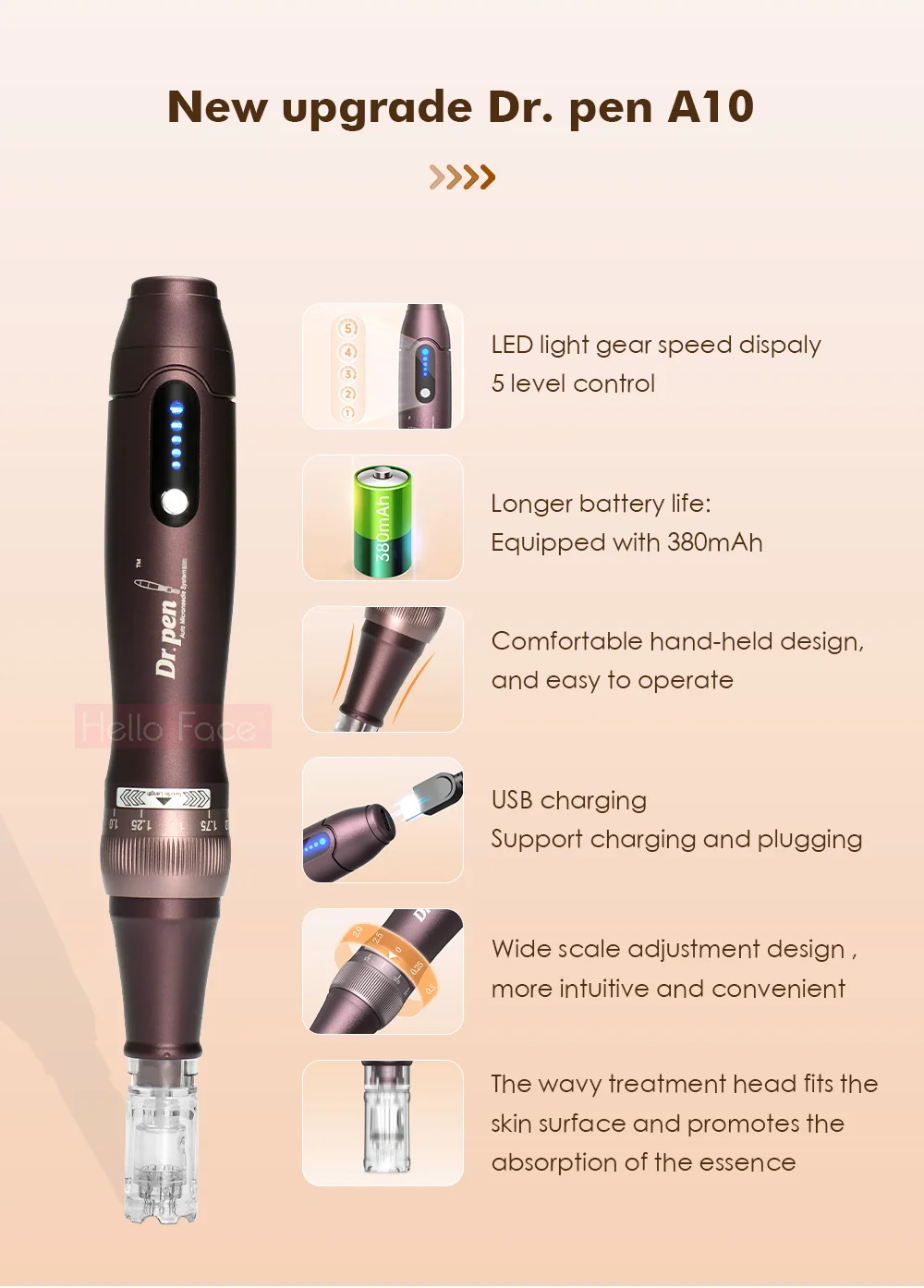 Dr. pen is the most advanced medical-grade automated micro-needling therapy device on the market . It is easy and totally safe to use since the needle tips are hidden inside the guide