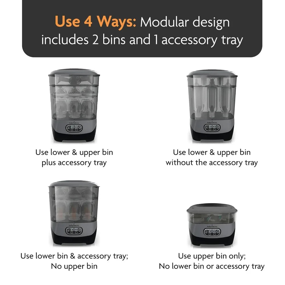 • DRIES 33% FASTER THAN OTHER STERILIZER DRYERS: Automatically sterilizes & dries bottles, breast pump parts, pacifiers, teethers, sippy cups and other accessories from any brand in 1 easy step, saving you time; Dries in 30 min vs 45 min for others