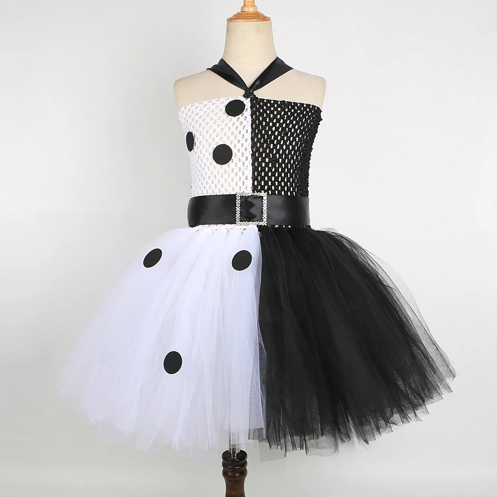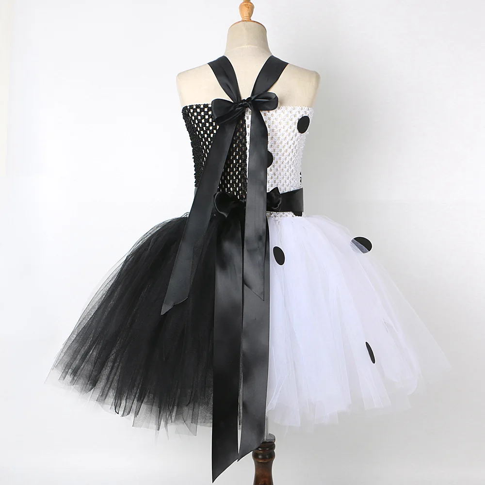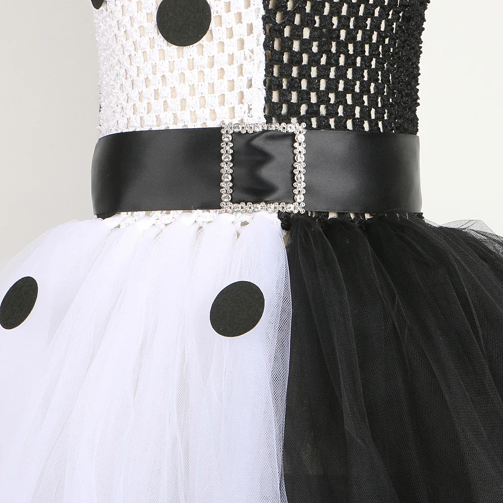 Halloween Costume Kids Black White Dalmatians Party Dress Clown Birthday Prom Dress Up Puffy Dress For Girls Clothes With Belt