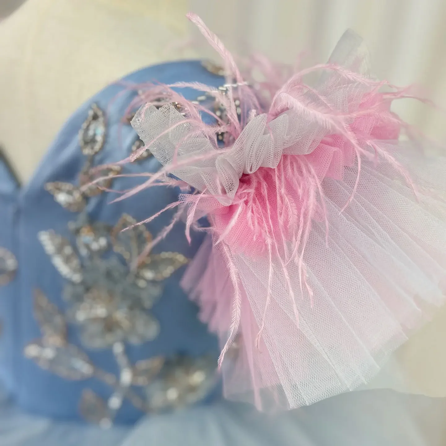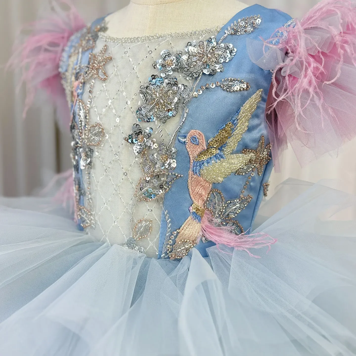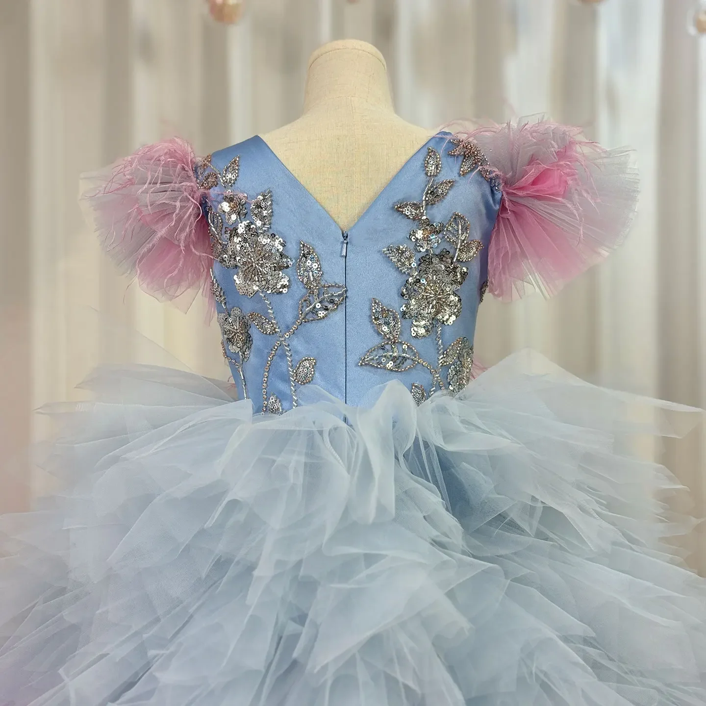 Luxury Flower Girl Dress Applique Feathers Beading Princess Prom Ball Gown for Kids Wedding Birthday Communion Party Quinceañera