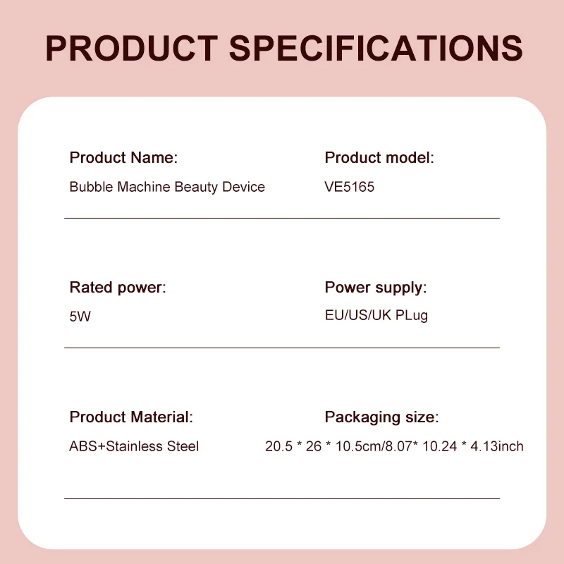 Bubble machine beauty device, combining cleaning and moisturizing effects. Deeply cleanse pores and remove aged keratin. At the same time, it locks in moisture and keeps the skin hydrated. Promote blood circulation and enhance skin vitality. Make your skin look refreshed and always maintain its best condition, beauty starts here.