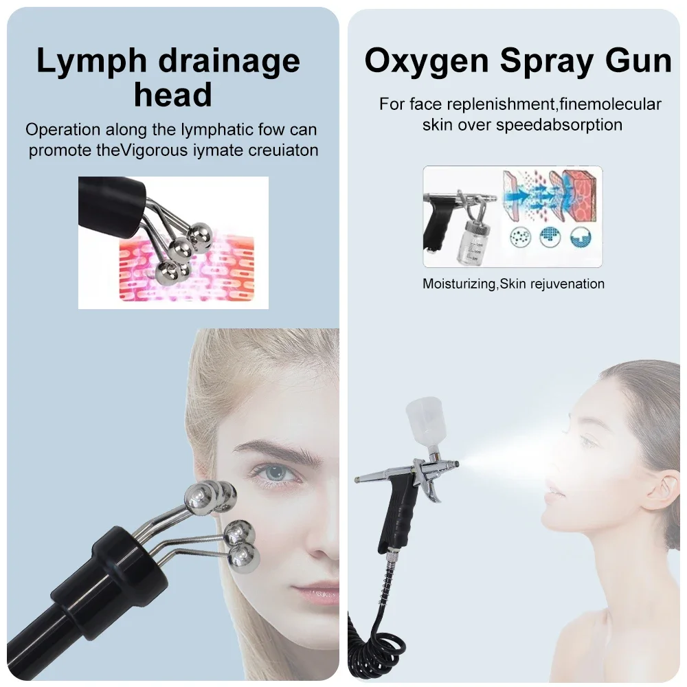8.Oxygen Spray :Spraying essence or toner evenly on face with 0.2Kpa pressure for skin rejuvenation and wrinkle removal.