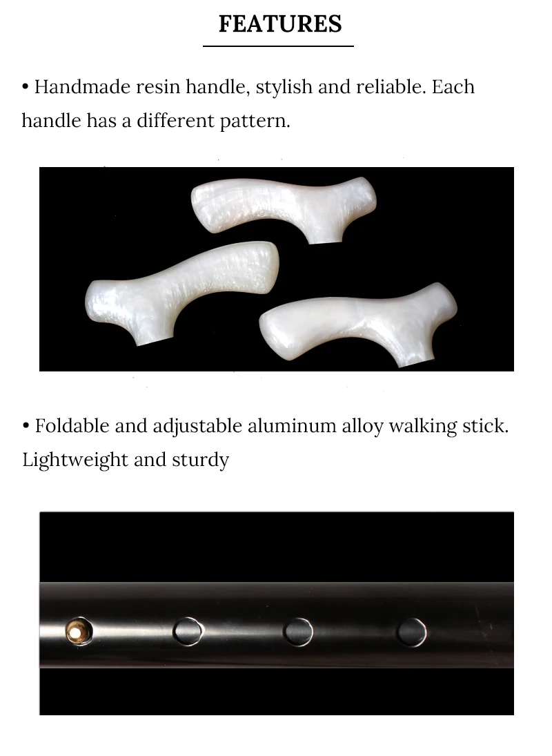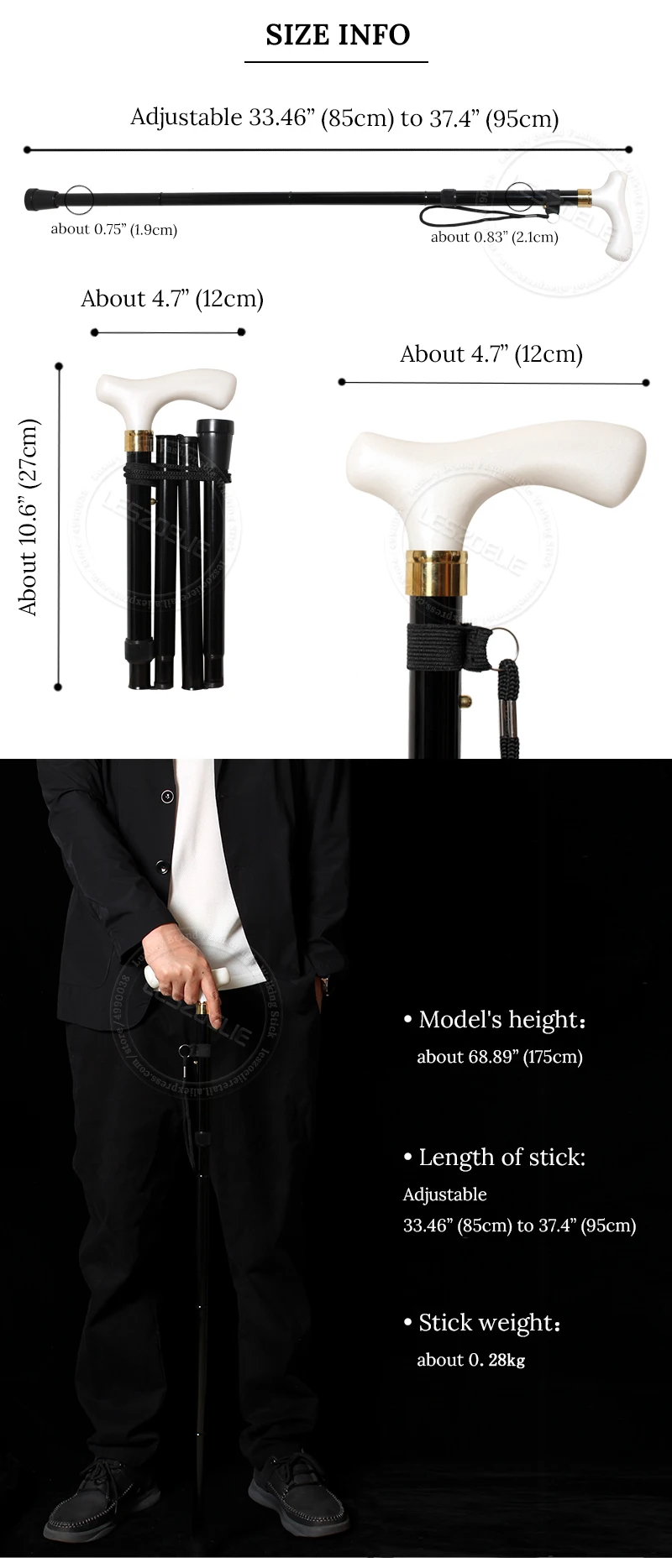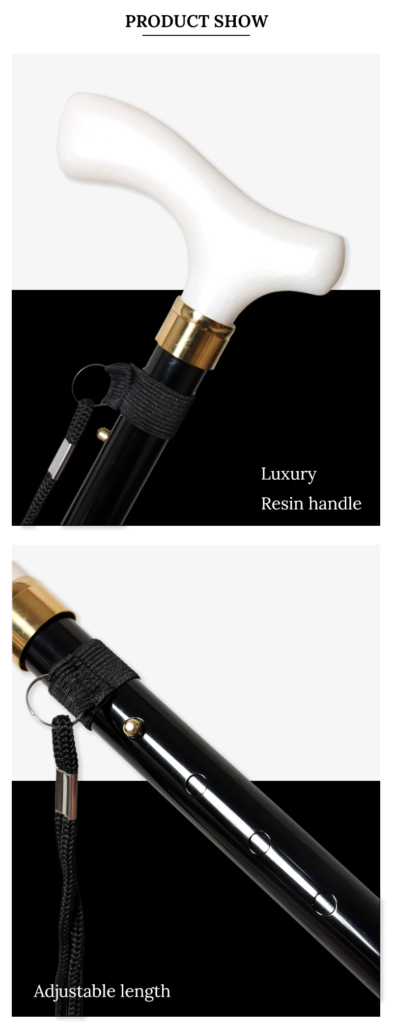 85cm to 95cm Two styles Adjustable Folding Walking Stick Men And Women White Resin Handle Black Aluminum Alloy Elegant Canes