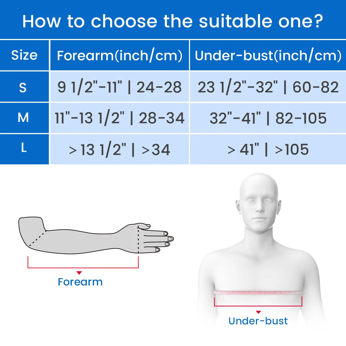 M: Under-bust 82-105cm, Forearm length 28-34cm
