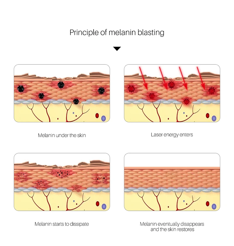 Faster: With a wide range of customer applications, powerful and fast energy directly decomposes dark pigments. Shorter treatment time and better treatment effect